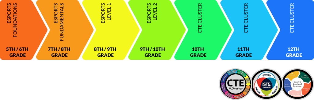 Our exclusive learning platform, Platform1, offers over 20 courses designed to meet CTE and industry standards. Coursework begins as early as 5th grade and progresses through 12th grade, ensuring vertical alignment and age-appropriate learning across all levels. More importantly, our curriculum is directly aligned with collegiate esports degree programs across the country, providing students with a clear pathway from classroom to career.